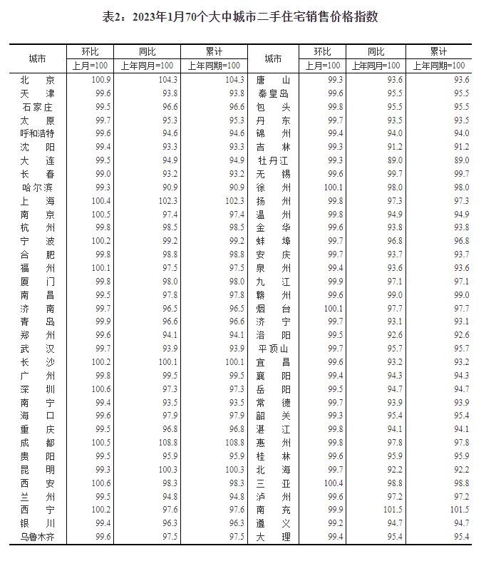 刚刚,国家统计局发布了2023年1月份70个大中城市商品住宅销售价格变动情况:
