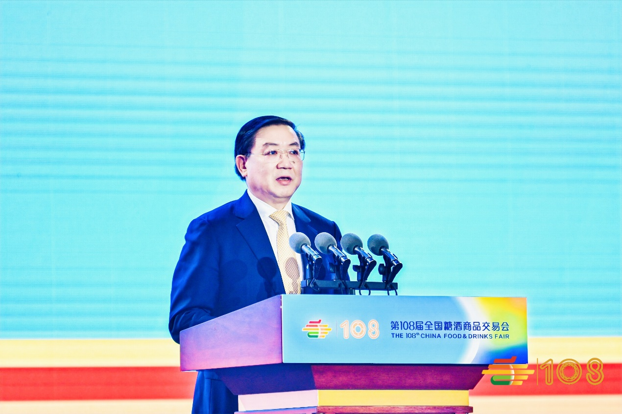 成都市委副书记、市长王凤朝在致辞中表示, 本届糖酒会是今年全球食品和酒类行业规模最大的综合性展会,40多个国家地区的6500余家企业踊跃参展,展出面积达32万平方米,客商人数有望突破30万人,规模创历届之最,对提振行业信心,消费信心意义重大,必将成为糖酒会历史上浓墨重彩的一笔。成都市将与主办方同心协力,联动全城资源,为广大客商朋友呈现一场精彩非凡的行业盛会。