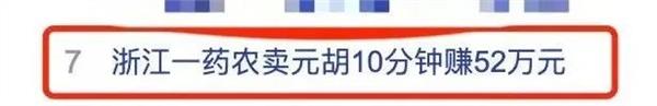 网络整理 2025-09-026月24日话题#浙江一药农卖元胡10分钟赚52万元#,登上热搜,引发关注