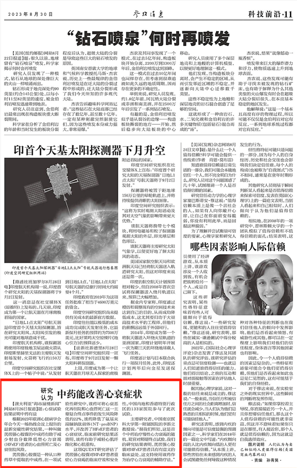 网络整理 2025-09-028月30日,《参考消息》刊发文章《研究认为中药能改善心衰症状》。