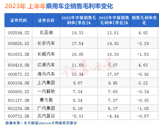 2023汽车行业半年报:比亚迪成为最赚钱车企,价格战影响多数车企毛利率