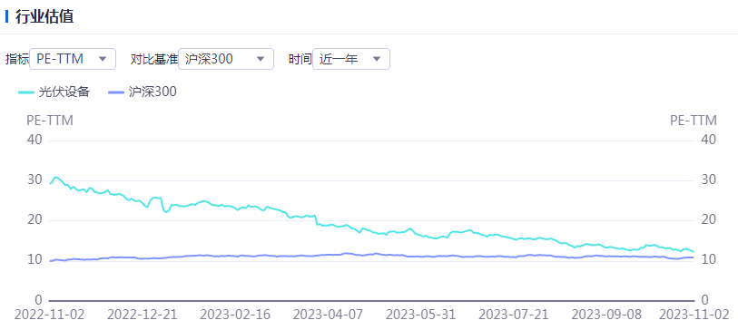 投资建议:截至2023年10月27日,光伏产业指数(931151)PE(TTM)12.20倍,处于历史估值分位数0.43%的位置;PB(LF)估值2.38倍,处于历史26.52%分位。目前光伏行业PE估值水平处于历史最低水平,市场已经充分演绎产能过剩预期和未来行业增速放缓预期。从长期来看,光伏行业市场渗透率较低、转换效率更高的新电池技术不断迭代,光伏行业面临的全球性市场需求较为广阔。中国的头部光伏企业在全球范围内拥有技术领先优势、成本优势和品牌优势,有望穿越周期,实现持续成长。短期中美关系有阶段缓和迹象,美联储加息接近尾声,中国经济数据好转,宏观层面对市场负面影响有望改善。建议投资者关注TOPCon和BC电池设备、一体化组件厂和电池片头部企业。