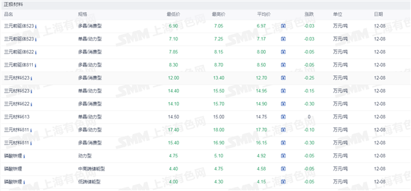 正极材料价格