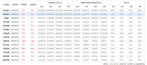 茅台发布中报,分红承诺提高红利投资价值。公司 Q2 营收/归母净利润分别同比增长 16.95%/16.10%,业绩显示韧性。上半年茅台酒实现营收 685.67 亿元,系列酒实现营收 131.47 亿元,i 茅台实现营收 102.50 亿元。上半年茅台酒基酒产量约 3.91 万吨,系列酒基酒产量约 2.27 万吨。公司发布关于2024-2026 年度现金分红回报规划的公告,2024-2026 年度公司每年度分配的现金红利总额不低于当年实现归属于上市公司股东的净利润的 75%,每年度的现金分红分两次(年度和中期分红)实施。调味品企业陆续发布中报,安琪酵母边际改善。中炬高新美味鲜公司上半年营收相较上年同期减少 3.89%,上半年启动营销变革、研发创新、运营优化等战略举措,推出股权激励计划。经过变革的过渡期后,公司将有望逐步在渠道、产品、成本管理等方面兑现改革红利。安琪酵母 Q2 营收/归母净利润分别同比增长11.30%/17.26%,季度环比改善。