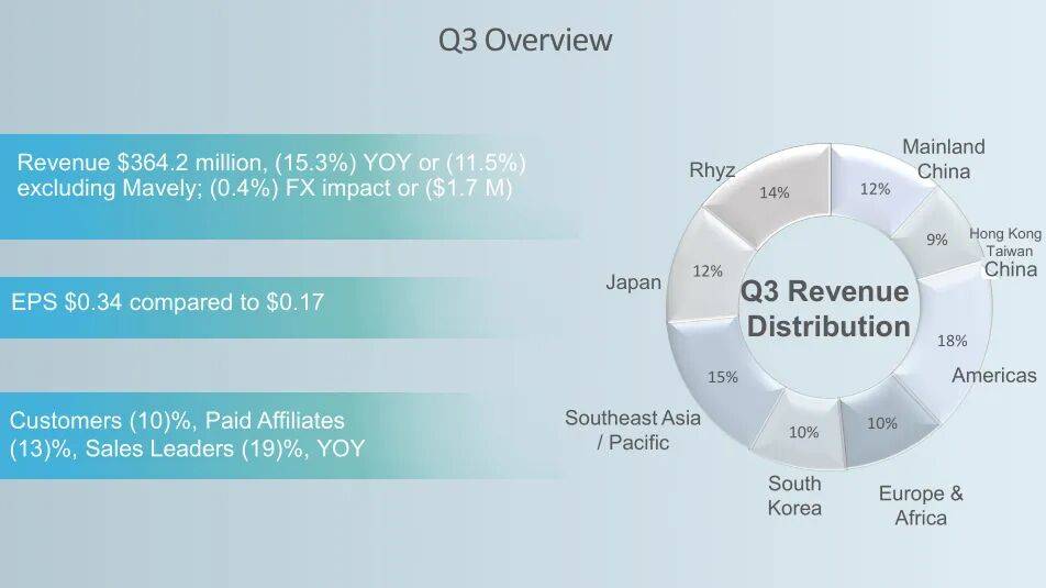 网络整理 2025-11-16三季度,虽然各市场区域净销售额全线下滑,但如新的经销商领袖数量环比有所增长;中国区业绩4250万美元(约合3亿元人民币),同比下滑20%,中国区经销商人数同比减少20%…