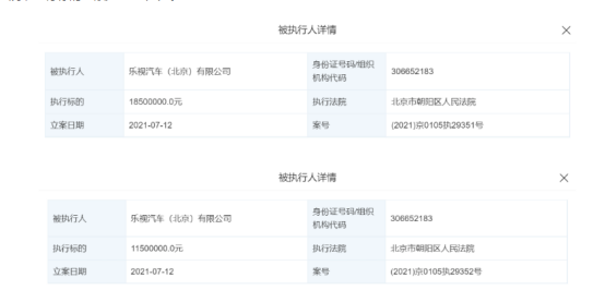 网络整理 2025-11-167月12日,乐视汽车(北京)有限公司新增两条被执行人信息,执行法院均为北京市朝阳区人民法院,执行标的总额为3000万元。