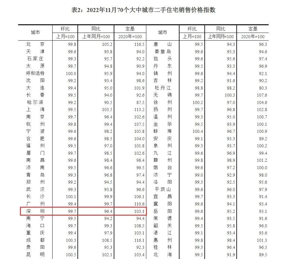 11月份70个大中城市商品住宅销售价格指数昨日公布,国家统计局城市司首席统计师绳国庆解读2022年11月份商品住宅销售价格变动情况统计数据称,2022年11月份,各线城市商品住宅销售价格环比下降,一线城市同比涨幅回落、二三线城市同比降势趋缓。