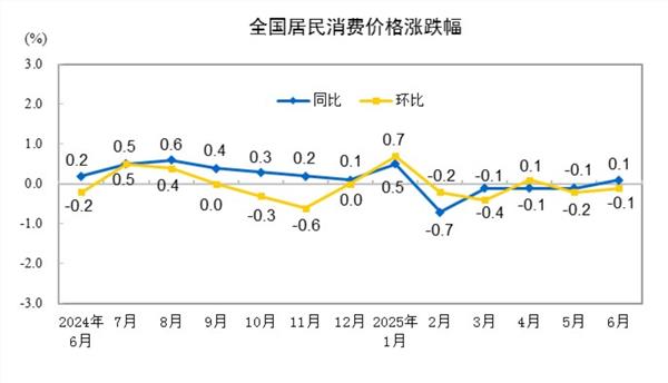 网络整理 2025-11-20(原标题:2025年6月份居民消费价格同比上涨0.1%)