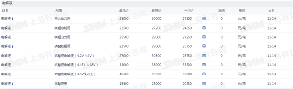 电解液价格