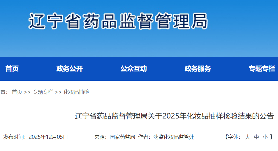 - 2025-12-14辽宁:3批次化妆品不符合