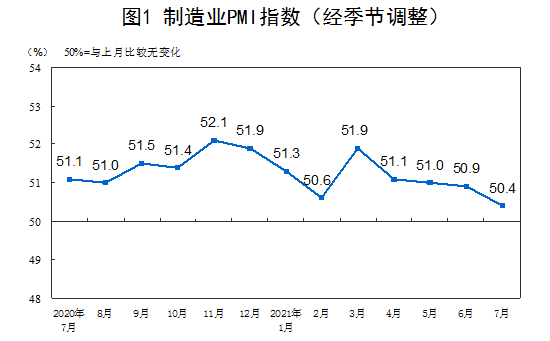 转载请标注:信息网——统计局:7月官方制造业PMI为50.4%