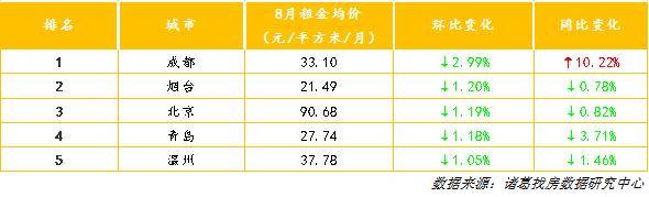 你房租降了吗?8月成都、烟台、北京环比降幅居前三