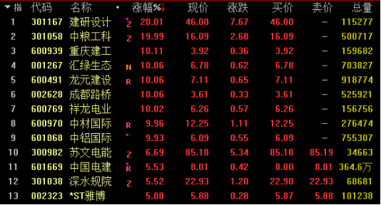 网络整理 2025-05-25今日基建板块大幅走高,截止发稿,建研设计、重庆建工、龙元建设、成都路桥、中材国际、中铝国际涨停;中国电建、深水规院等个股涨幅超5%。
