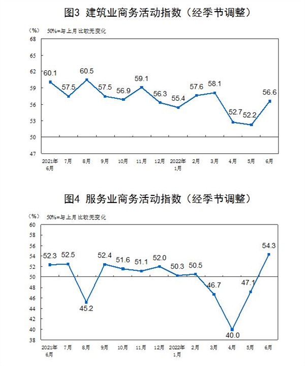 6月份,非制造业商务活动指数为54.7%,比上月上升6.9个百分点,重返扩张区间,非制造业景气水平连续两个月明显回升。